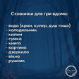 Вік: 9+ років (вказано приблизний вік, все залежить від навичок та вподобань дитини)Кількість гравців: до 10 дітей. Мова: українськаМісце гри: вдома,у приміщенніКількість завдань: 9 шт